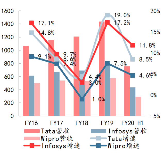 图1:印度服务外包龙头企业的营收情况(亿元)