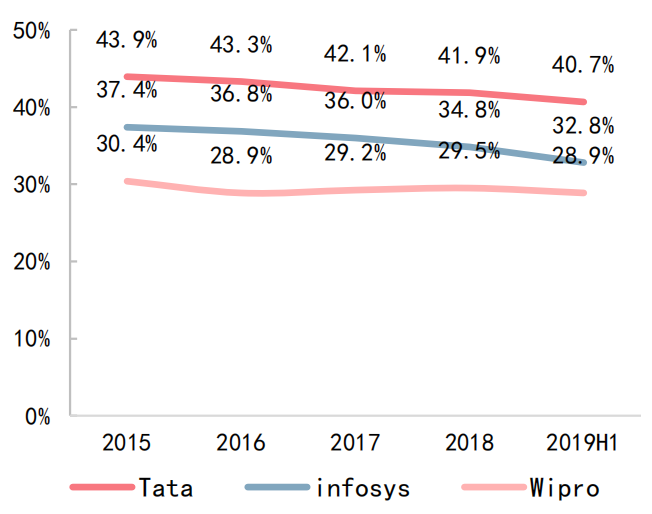 图3:印度服务外包龙头企业毛利率情况